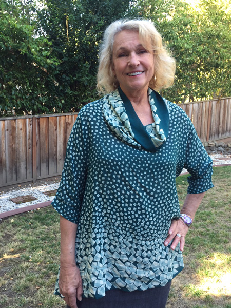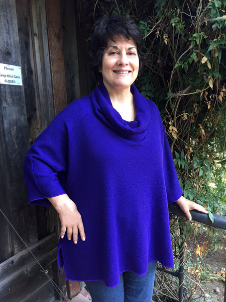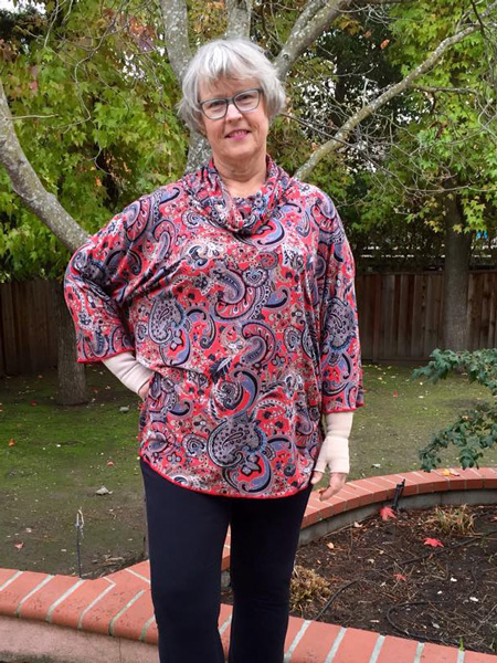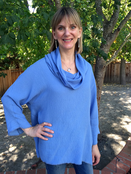 Maria bought this knit fabric at Stone Mountain and Daughter in Berkeley, CA. She added cuffs to her big top.
