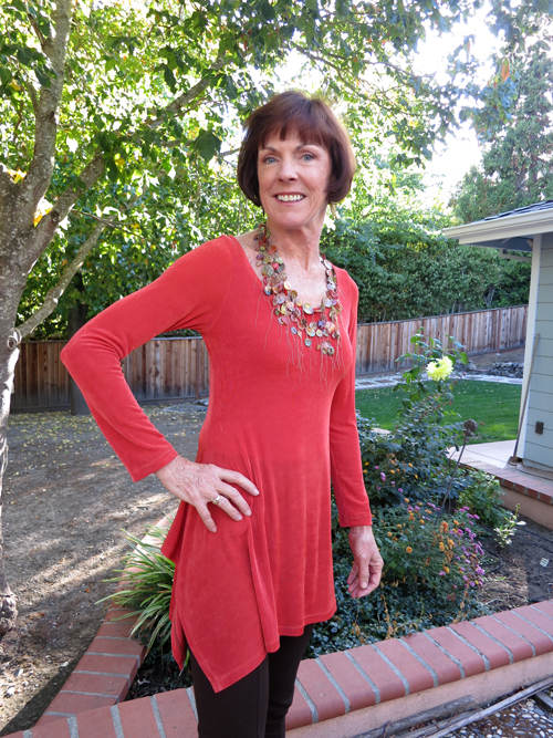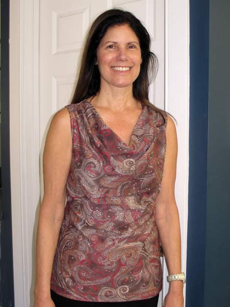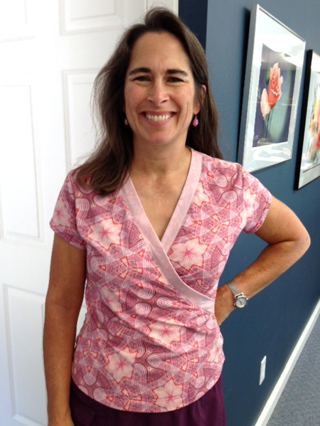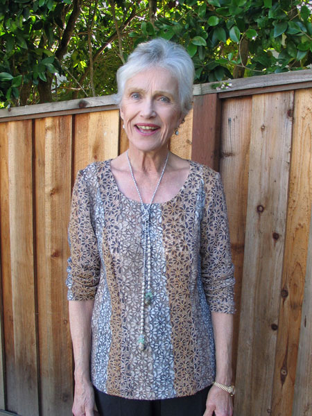 Cathy is wearing a top made with Katherine Tilton's Vogue V8817 pattern.