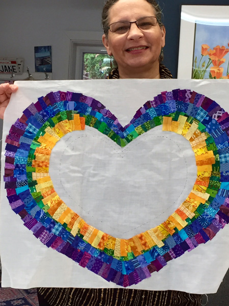 Students could make a garment, a piece of art, a wall hanging, or anything where fabric is applied to a surface. It could be sewn or fused or glued. Enjoy the photos below.