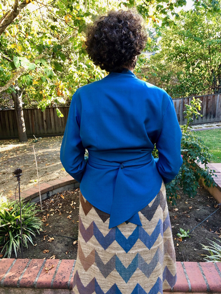 Here is the back view of Wai's jacket. She added the center back seam on the top piece so she could get the chevron effect of the fabric.