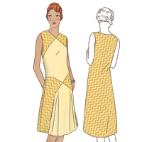 Pattern description: "Sleeveless shift features side bust darts and pockets. Origami-inspired yoke is fully lined."