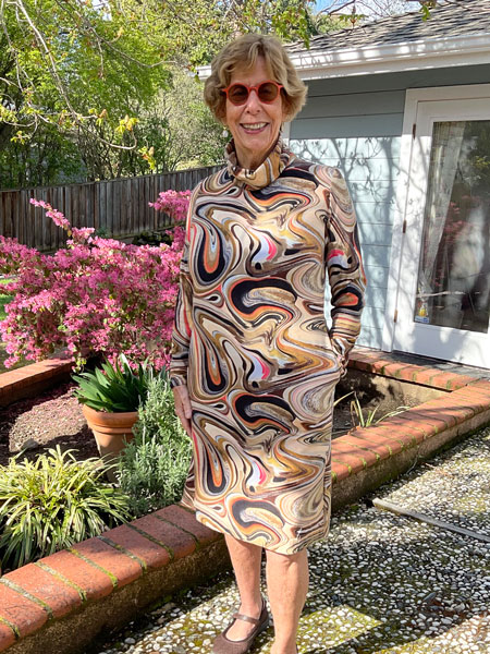 Joy made this cosy dress in a soft fleece fabric designed by Jane called Poppy Movement. It is sold in many different fabrics by Spoonflower.