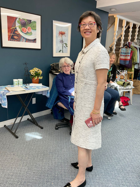 Keren made this cool summer dress for our hot weather. There are at least 4 different prints and it was not an easy construction, but turned out great.