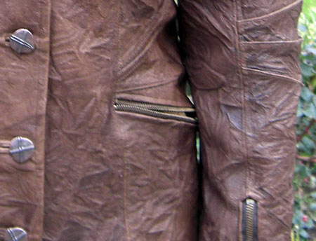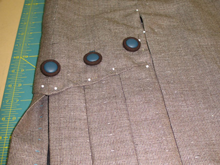 Ultra leather was used to cover the buttons and for the bound buttonholes. The buttons were covered by Pat Mahoney in Lodi CA.