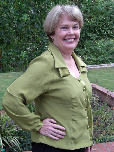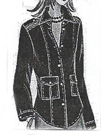 Vicki looks great in her denim shirt with perfect top stitching. She used Marfy pattern 9865 which she has had for some time. The buttons were purchased on her Paris trip.