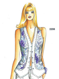 Some Marfy patterns come free with the catalogue, and Pat traced off the pattern 2208. She was lucky enough to find beautiful black wool melton and a cream and black tweed to make this vest in the "freebie" corner in Jane's studio. She bought lining and a faux leather trim and created this neat looking vest.