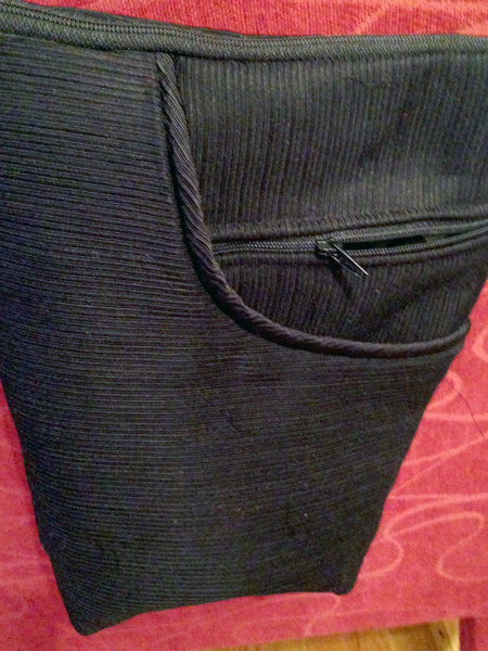 Maria used part of her wool boucle shrug fabric for this purse and complimented it with a fabric scraps from a different garment. |