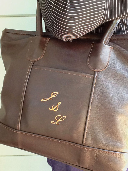 Jackie embroidered her initials on this beautiful bag.