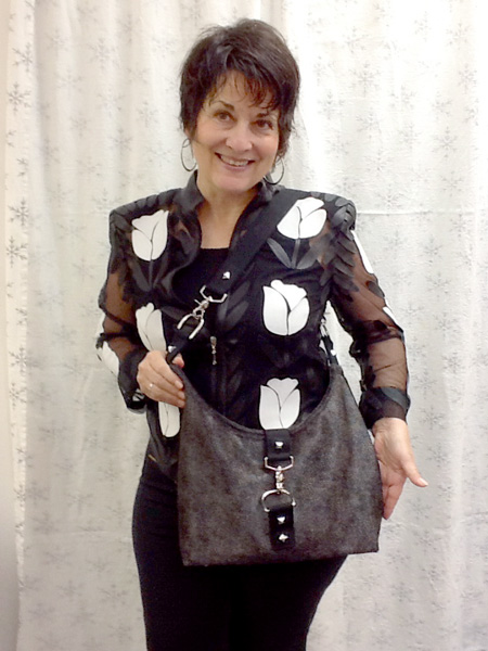 Santina made a fabulous bag. She used a textured leather from The Hide and Leather House in Napa, CA. The hardware was purchased on line, and the pattern came from Craftsy.com