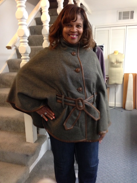 Jane created The London Cape pattern, and it is flattering to all body sizes and types. After trying on Jane's cape, all of Jane's sewing students wanted to make one too. So Jane offered several one day sewing classes, and students left the class with their capes almost completed. A real sense of accomplishment. Talk to Jane if you would like to make her London Cape pattern.