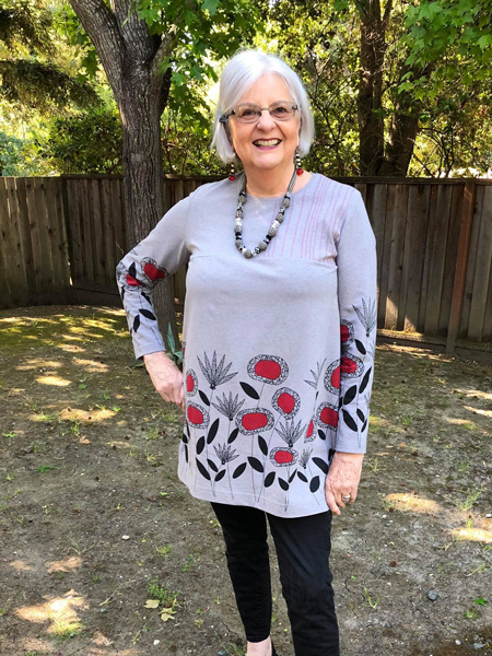 Barbara looks so good in this simple shirt which she calls Lisa’s shirt because Lisa has made it many times. The pattern is by Louise Cutting and Linda Lee.