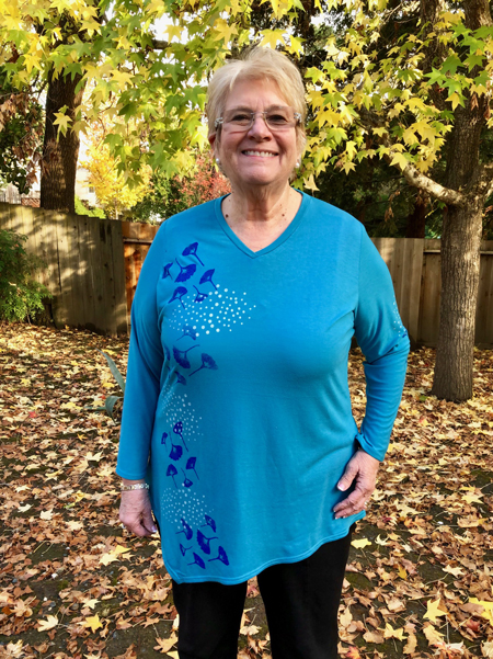 Joy finished the edges with binding on her new top.