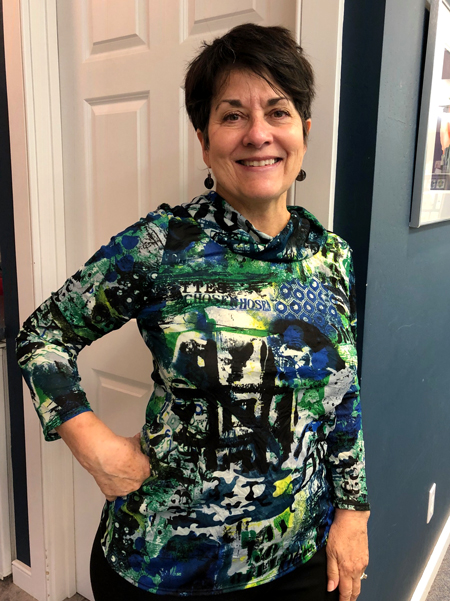 JoAnn bought this lovely knit fabric at Piedmont fabrics. Jane had the pattern in her studio that worked perfectly for her top.