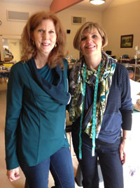 One of Jane's students from a few years back, Sharon Sciabica, came to visit one day. She now lives in the area. It was good to see her and know she is still sewing up a storm. She is wearing the teal colored sweatshirt which she made using a Marfy pattern.
