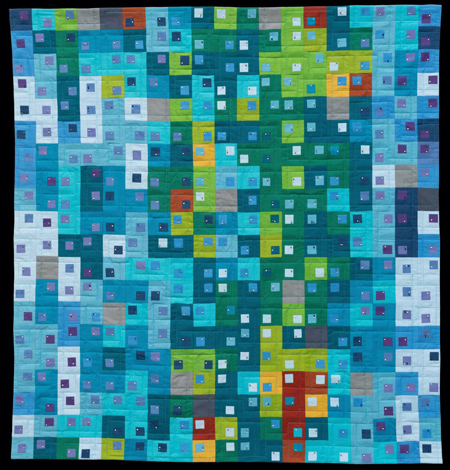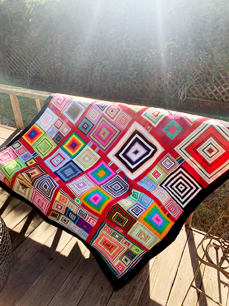 Vicki E made this stunning quilt based on temperature for the year 2022 in San Francisco. Jane's students loved seeing the work in progress. It was displayed in the De Young museum.