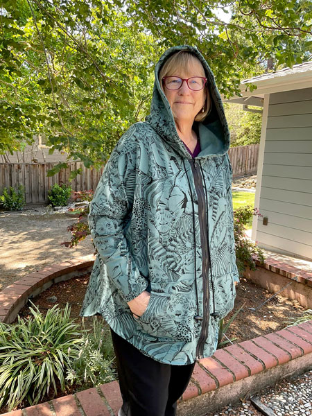 JoAnn made this hoodie with Butterick B6863. She had found the knit fabric with an animal design while she was in Portland.