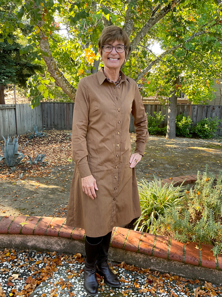 Fran sewed this charming wool dress for the holidays. This style really looks good on her.