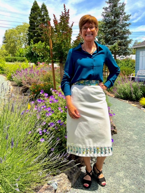 Barbara made this skirt sometime ago and never had anything to wear with it. Now she does and they look wonderful together.