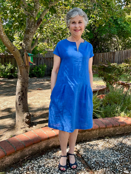 Vicki looks cool in her new linen summer dress.  The pattern is StyleArc's Autumn Dress.