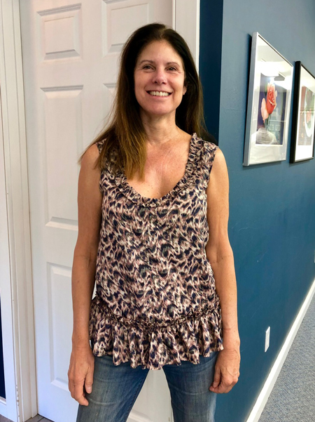 Pat looks great in her new top. She used Vogue 8856 for the pattern.
