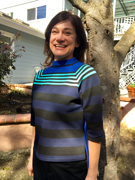 Jean designed a top out of this striped knit fabric. The pattern was her own and she did a great job of matching all those various width stripes.