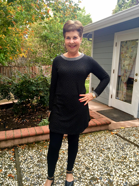 Here is Vicki's first knit tunic, which is a great look with leggings.
