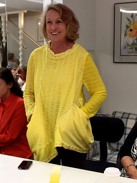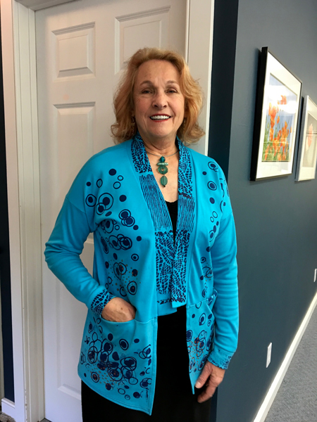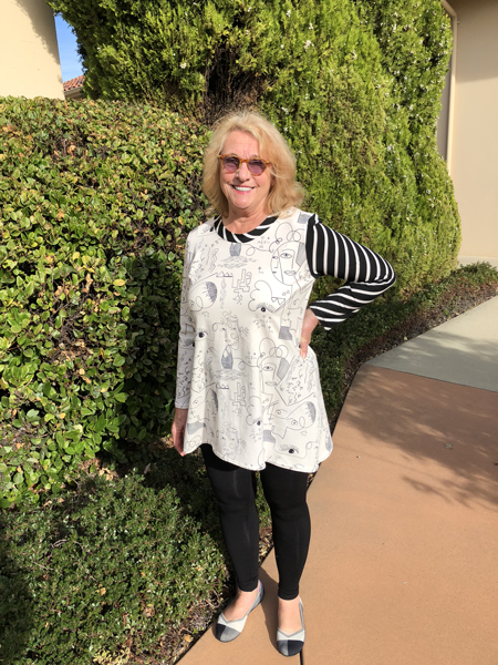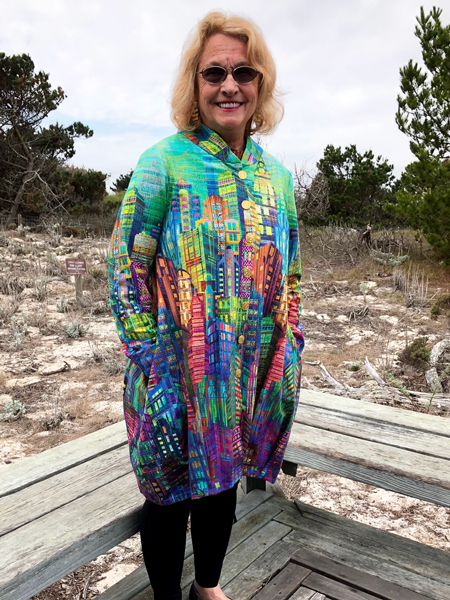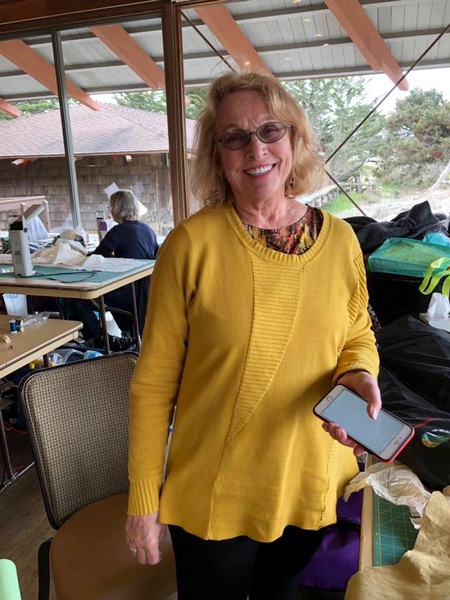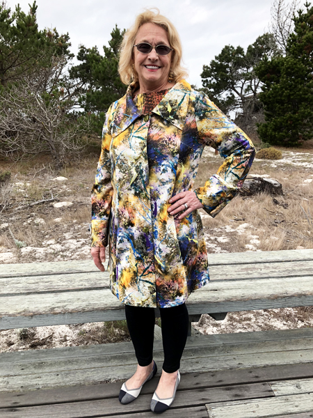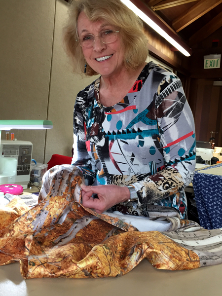 I first met Diana at an ASG sewing retreat in Auburn, California, and since then she has been a regular visitor to my studio. Her slideshow will show you creations she has sewn at home and in my studio. Diana was already an accomplished Needlewoman when we met, and she is continually improving her skills. She has a wonderful sense of style, and has the confidence to try lots of new things where others would be fearful. I love her positive attitude, and she brings sunshine to the studio when she comes on Friday mornings.