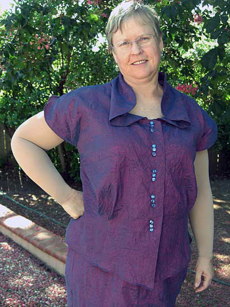 Vicki made the blouse, skirt, and Issey Miyake coat (Vogue pattern 1257) as part of a Swap Challenge.
