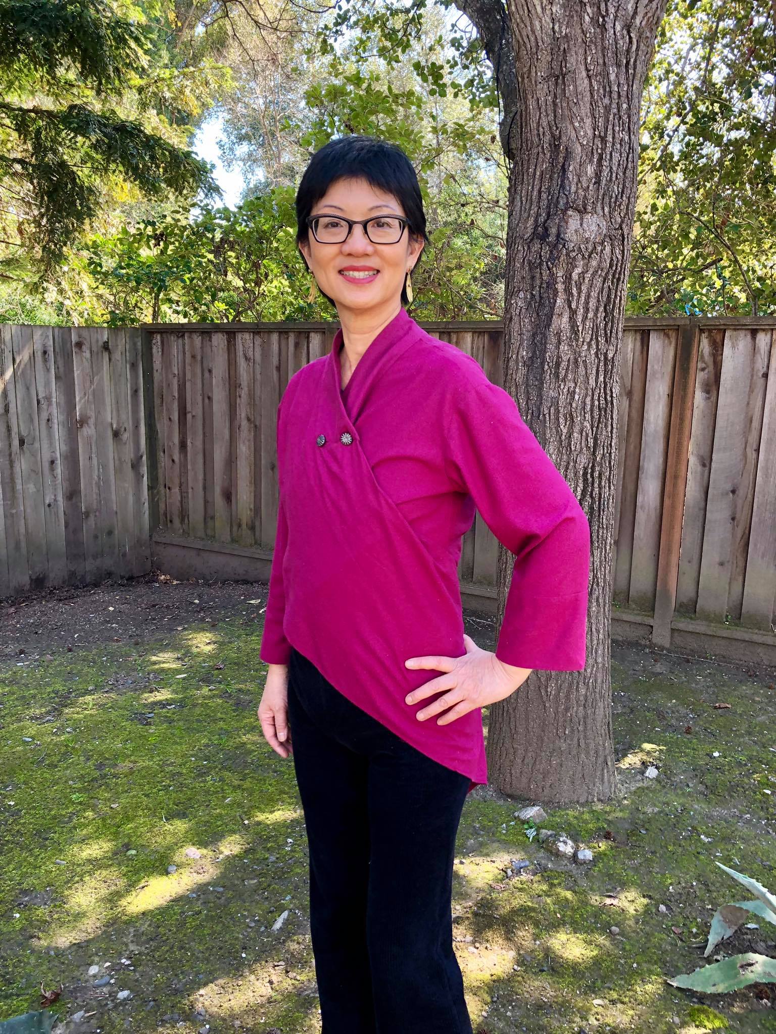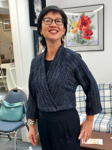 I have known Wai for a short time but she has added her skills, expertise and energy to the studio and my retreats. She was born in Hong Kong to a family that was in the business of sewing and is a skilled needlewoman especially with her handwork. She loves fine fabrics and designer patterns so we all want to see what she is making next. I think she has maybe learned more about color choices and serging since she joined the studio. Enjoy her beautiful garments.