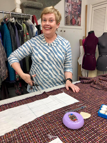 Kathleen is starting to cut out her French couture jacket. |